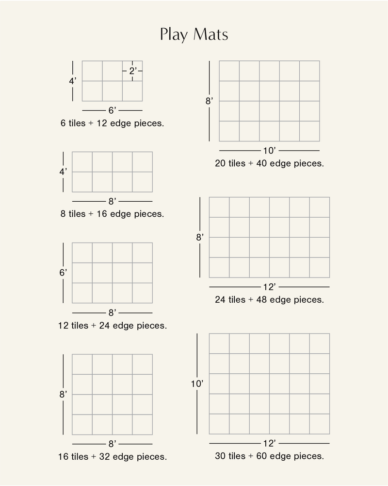 Play mats are designed modularly to fit a variety of sizes and spaces. All of our prints are hand-illustrated and there may be some areas where pattern alignment is varied - just like art in real life, we embrace the imperfections!