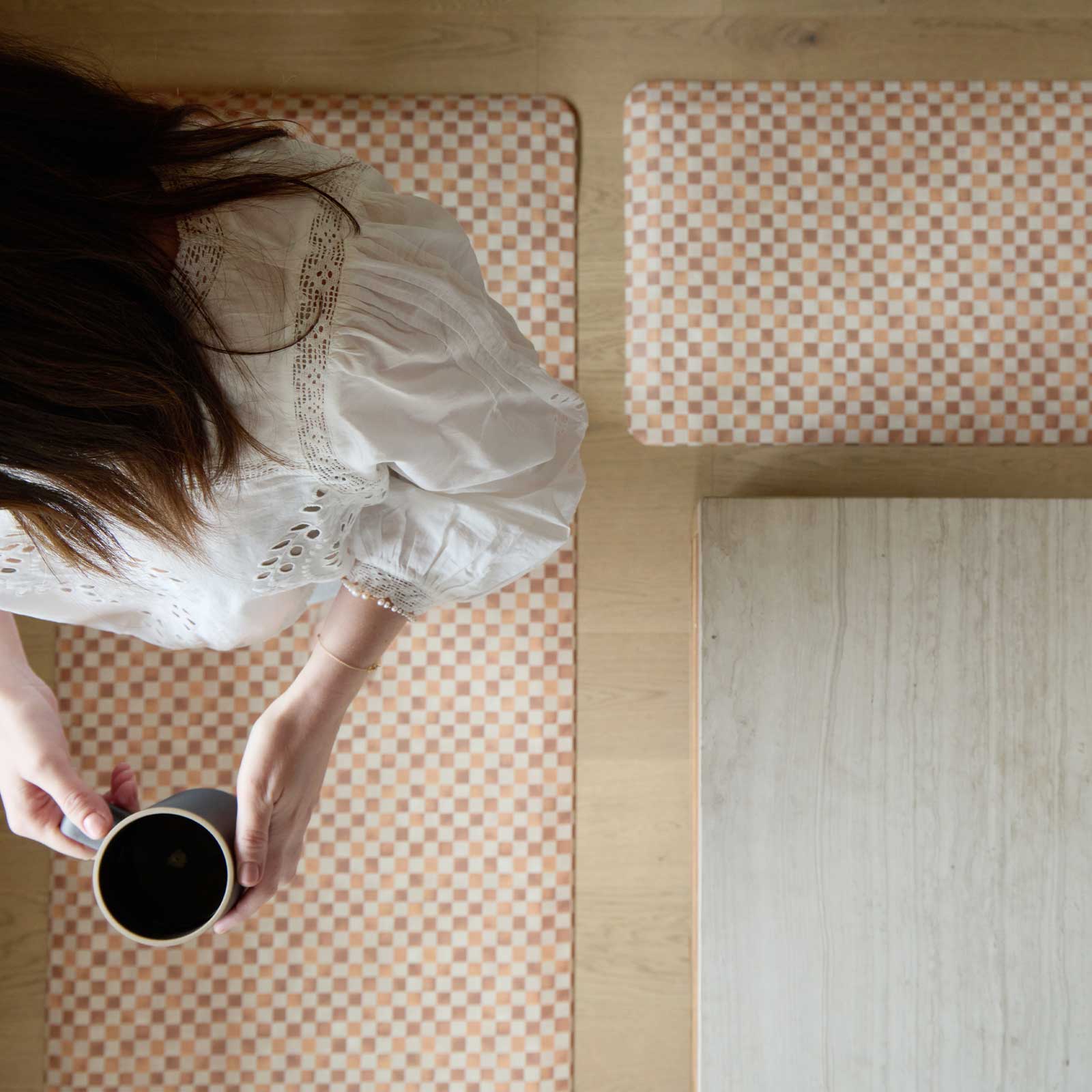 We create beautiful anti-fatigue kitchen mats that offer support and reduce the stress put on your feet, knees and back from standing on hard floors. Each House of Noa standing mat is soft to the touch and designed by hand to create a relaxing and aesthetically pleasing standing experience.