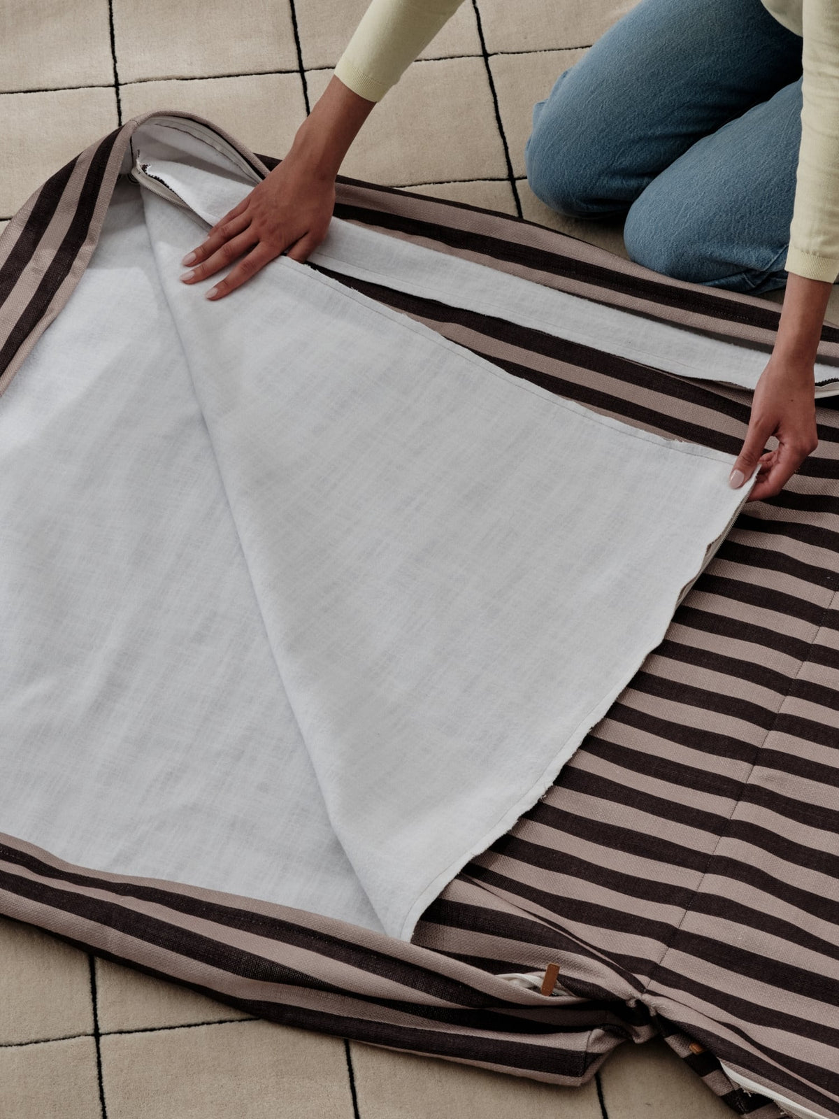 Remove the foam and toss the covers in the wash on cold and tumble dry low, separately. For smaller spills, a quick spot clean with gentle detergent does the trick. Do not bleach, dry clean or iron.