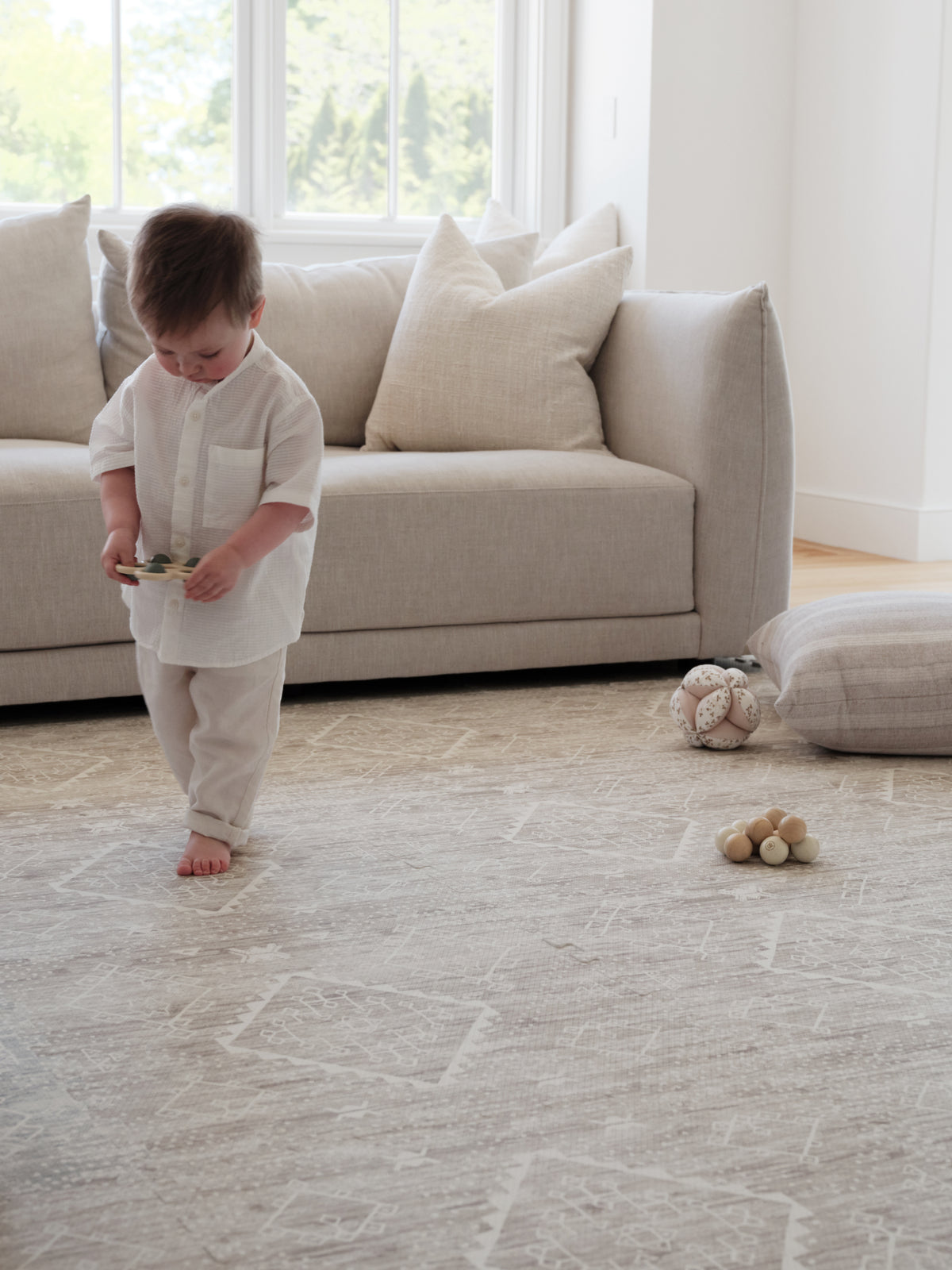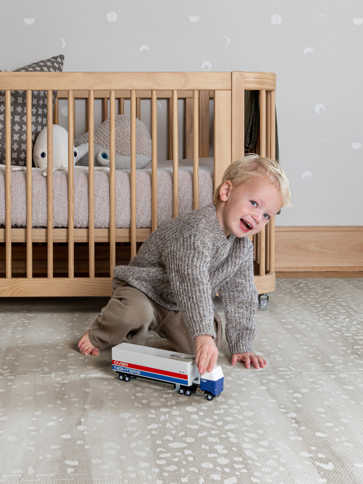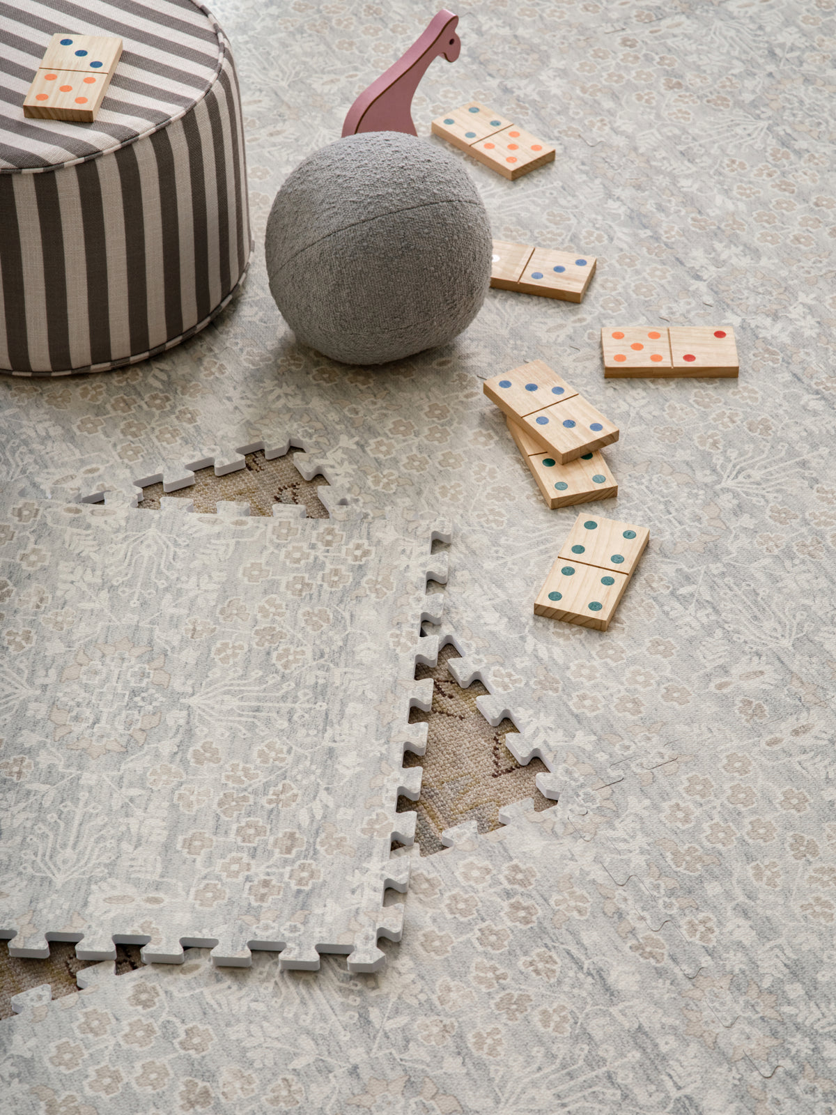 Play mats are designed modularly to fit a variety of sizes and spaces. All of our prints are hand-illustrated and there may be some areas where pattern alignment is varied - just like art in real life, we embrace the imperfections!