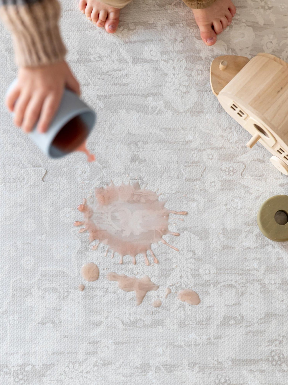 4. If using a dish soap cleaning solution, be sure to thoroughly wipe the mats with a damp cloth afterwards! Do not soak your tiles or use large amounts of water or cleaning solution.