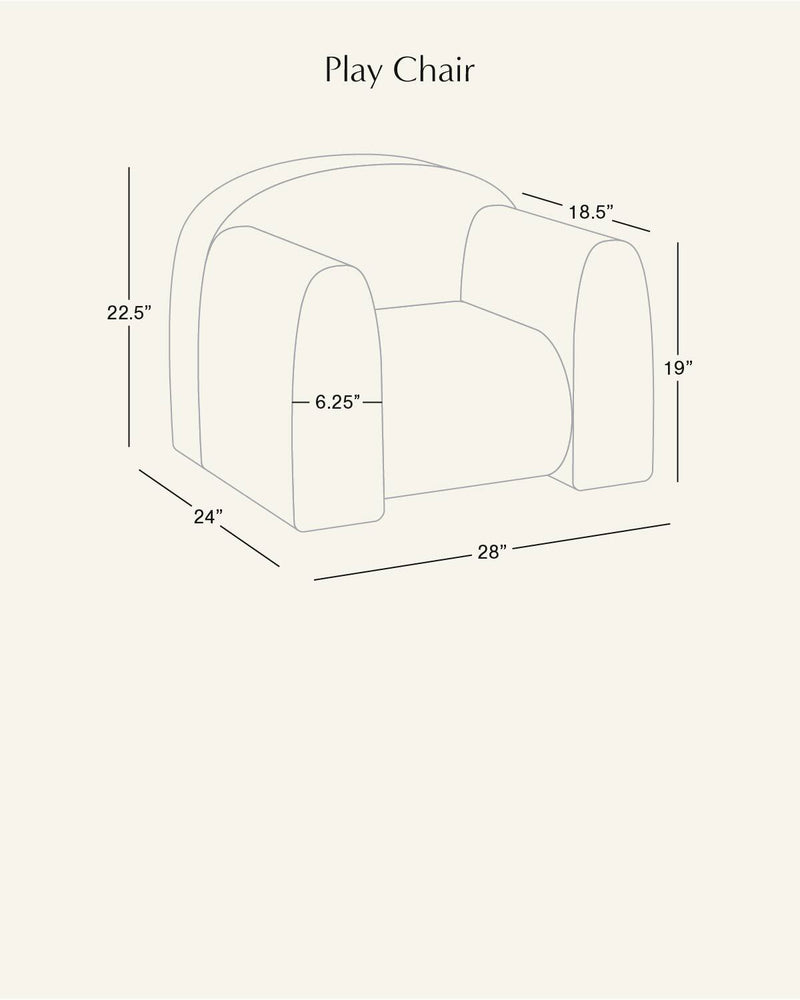 With an iconic shape, washable fabric, and mix & match pillow pairings, our new play chair has everything your littles need and more. Structured, comfortable, and made with the same design DNA as the rest of our soft furniture collection. Make it even more special with embroidered personalization, a perfect gift for playtime, storytime, all the time.