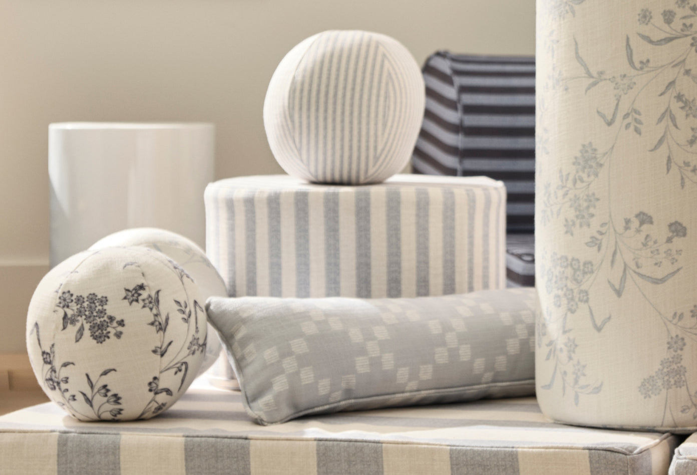 Grid is our textured linen weave fabric with a hatched graph print in Coconut & Stone, a light greige and creamy off-white.