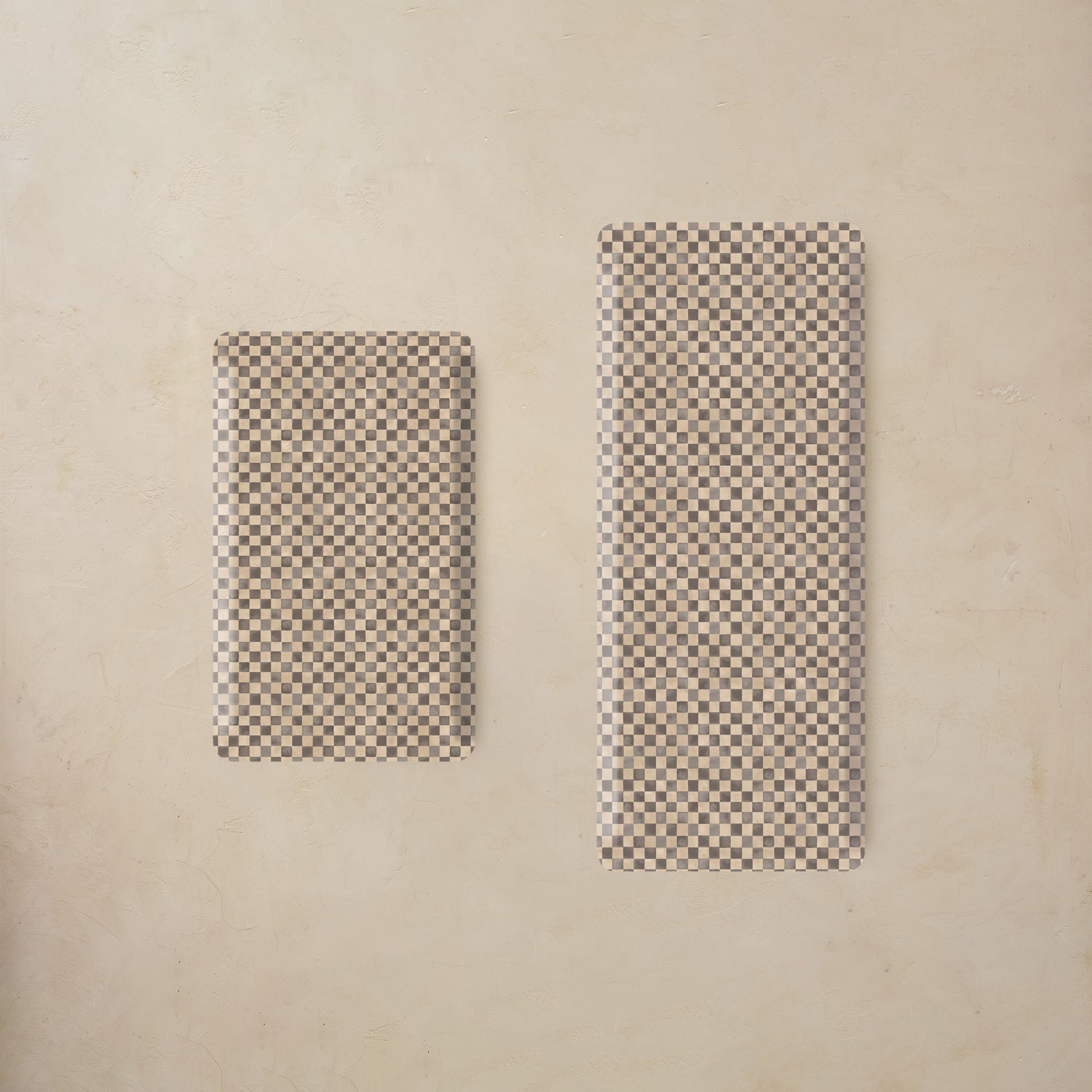 Mushroom is a stone grey and sandy beige in our watercolored checker print.