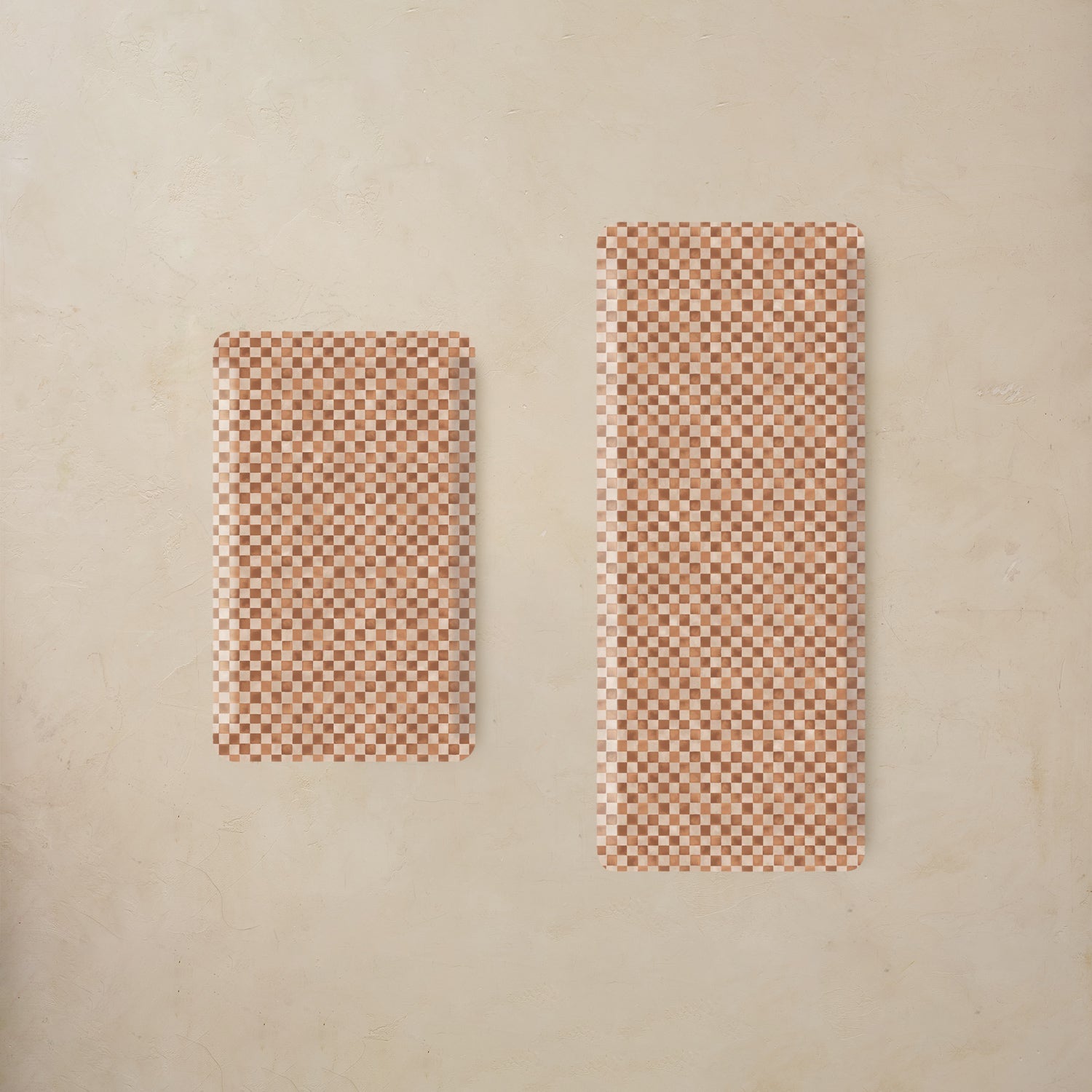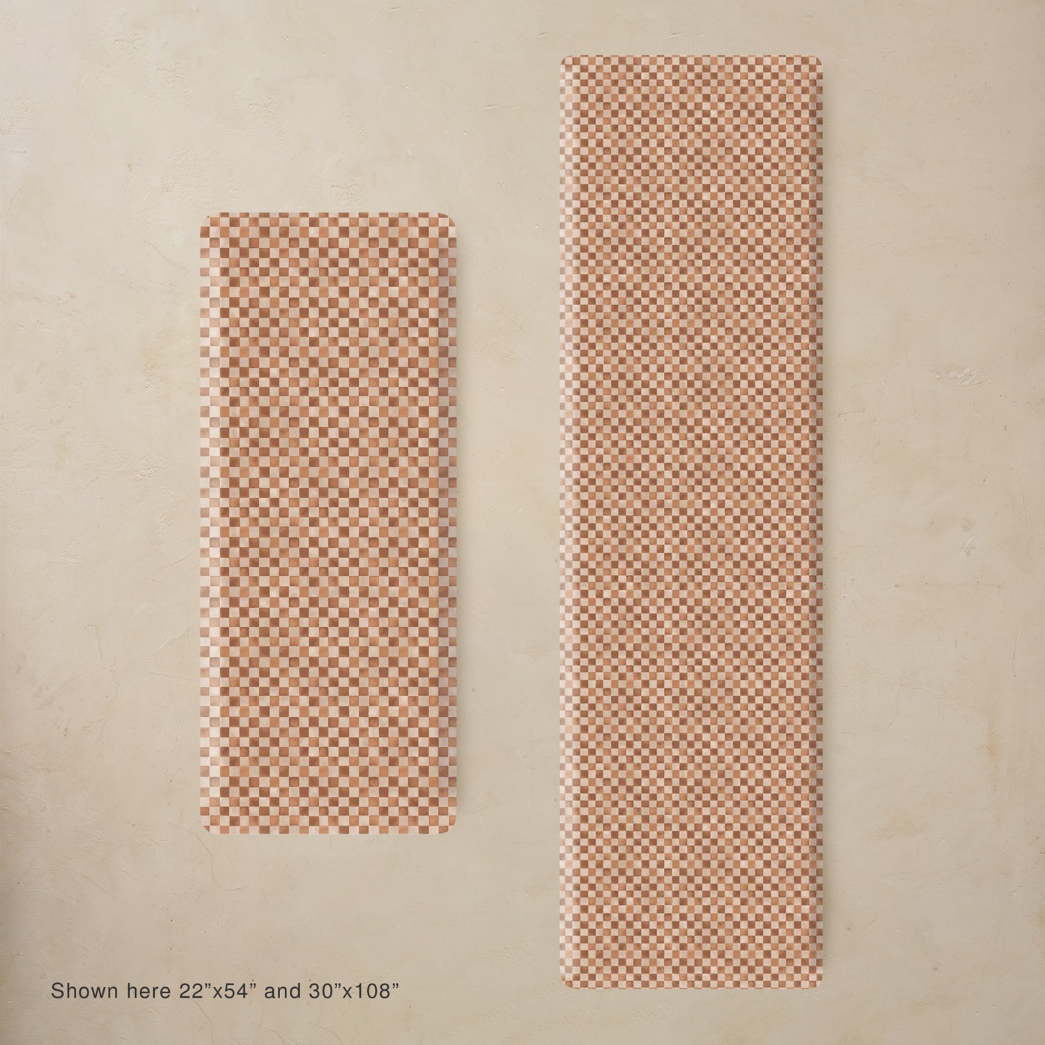 Sepia is an earthy burnt orange and pale beige in our watercolored checker print.