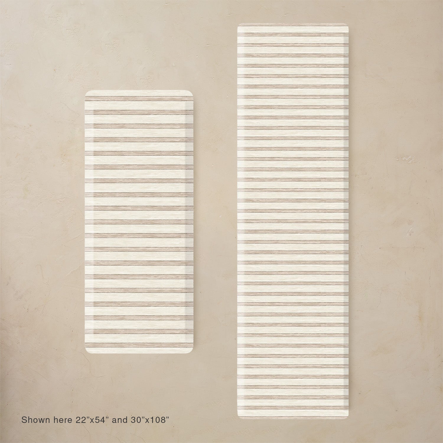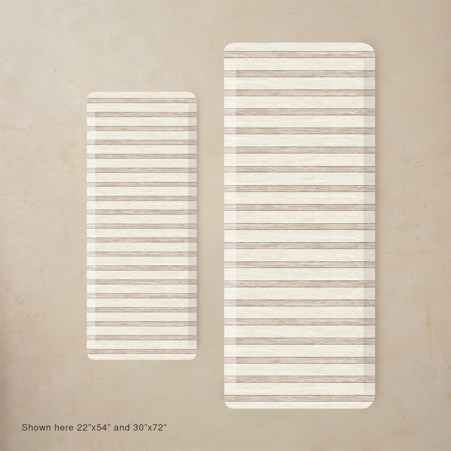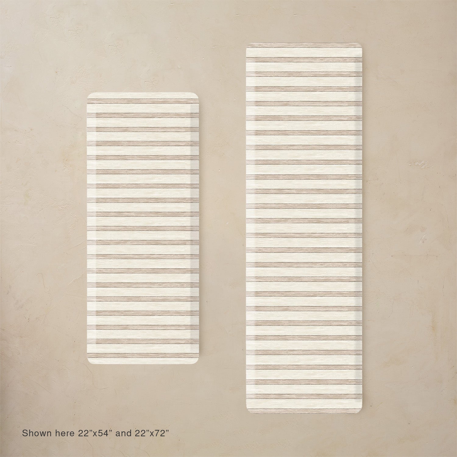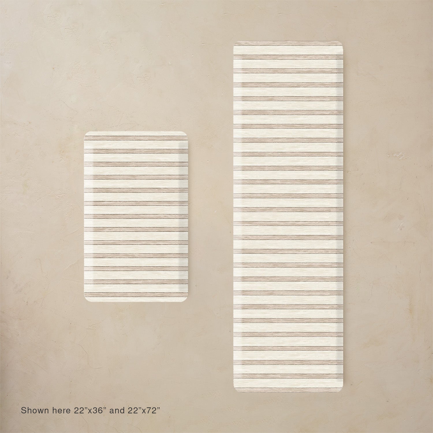 Mink features warm taupe painted stripes with contrasting outlines on a soft cream background.