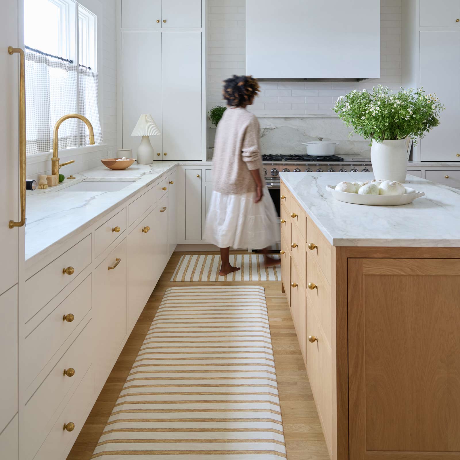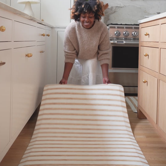 22x36Meet Devon: bold, timeless, and ready to stand the test of time. With thick, classic stripes and a subtly hand-painted look, this anti-fatigue mat brings graphic charm to your kitchen, office, or wherever you stand most. Beneath the design? Cloud-like foam that supports your feet, knees, and back, no matter how long you’re chopping, dancing, or deep in emails. Effortlessly wipeable, endlessly stylish, and made to fit with your home.