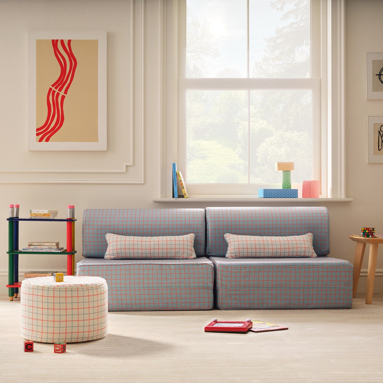 GridThe Seat is the heart of your new modular couch. Soft yet sturdy foam supports hours of play, lounging, and imaginative fun. The Seat includes one foldable base & one backrest, each with a removable and machine-washable fabric cover. The base layer unfolds to create a flat surface, perfect for lounging or turning into a fort. Ideal for playrooms, living rooms, or anywhere your family gathers. Add a Waterproof Cover for added protection.